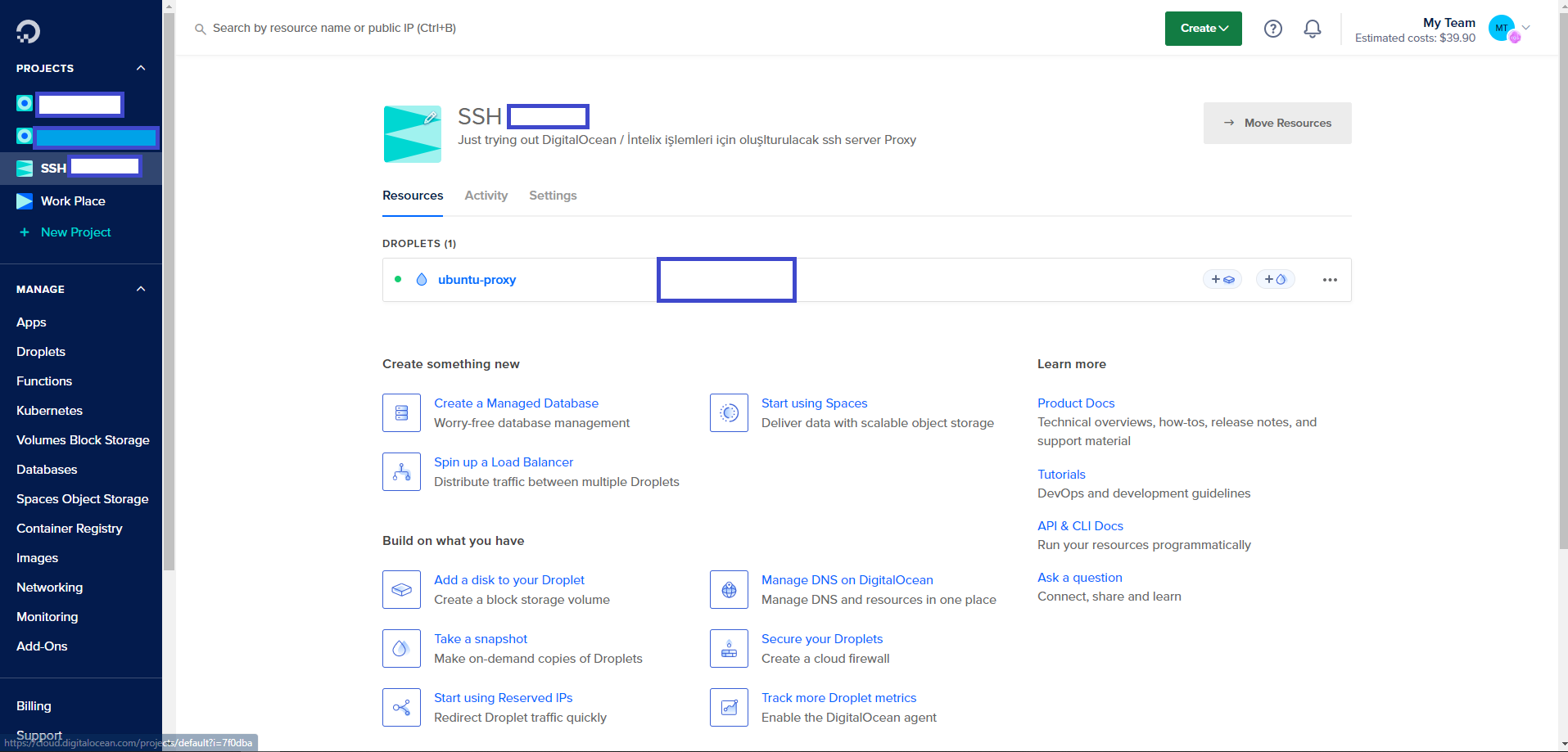 1 - İlk Digitalocean vb bir platformda bir ubuntu server oluşturuyoruz burada amacımız bulunduğumuz lokasyondan farklı bir ülkede IP adresi olan bir sunucumuzun olması.“DigitalOcean Web Arayüzü”